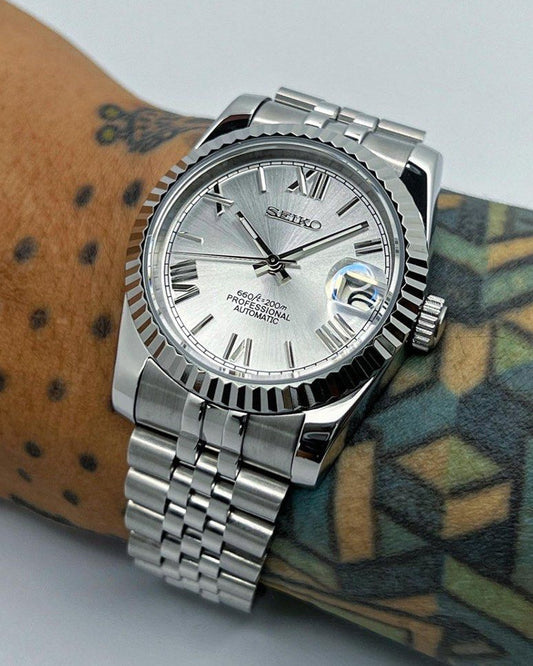 Datejust "Blanco Ártico" con números romanos - SeikoMod