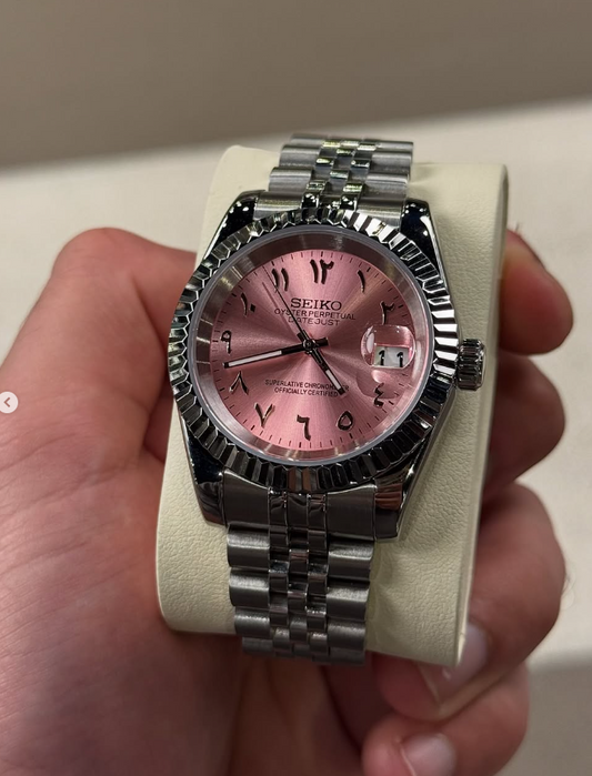 DateJust - Reloj árabe rosa con efecto sol - SeikoMod