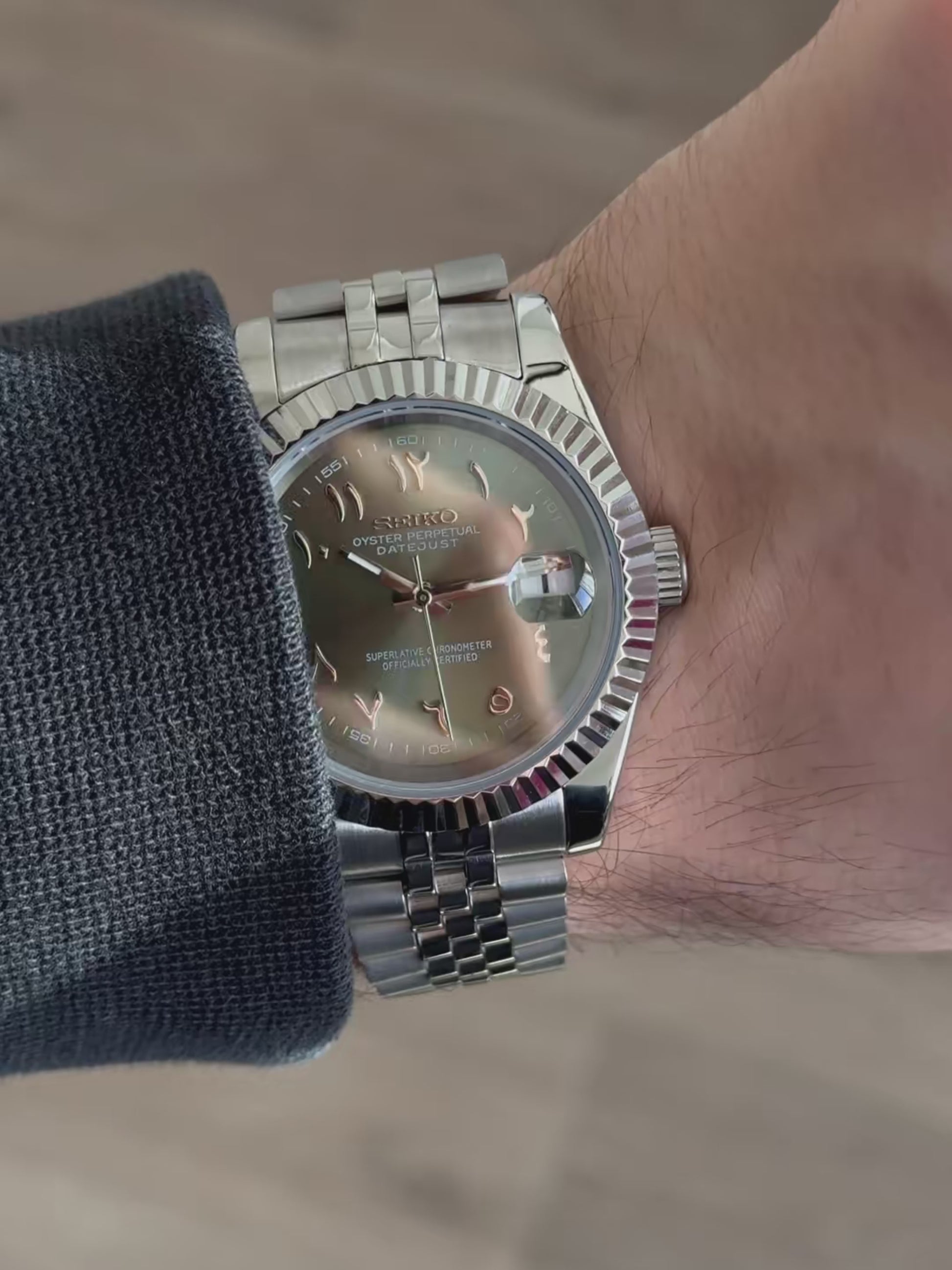 Datejust con esfera árabe color oliva - Seiko Mod