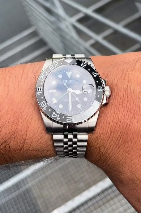 El SeikoMod GMT Bruce Wayne es un reloj que encarna la dualidad perfecta entre elegancia y potencia . Con su bisel negro profundo y su esfera sobria, evoca el carisma y el aura misteriosa de quienes se destacan sin esfuerzo. Diseñado para viajeros modernos y amantes del estilo refinado, este reloj es un homenaje a quienes dominan con confianza su tiempo y sus ambiciones.