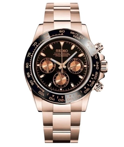 Un boîtier aux éclats cuivrés, un cadran aussi profond que l’onyx… La Daytona Obsidian Pink capture la force des contrastes. Noir d’abîme et reflets dorés, elle joue avec la lumière comme un secret bien gardé, réservé aux esthètes.