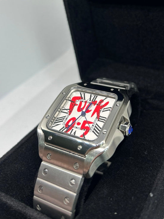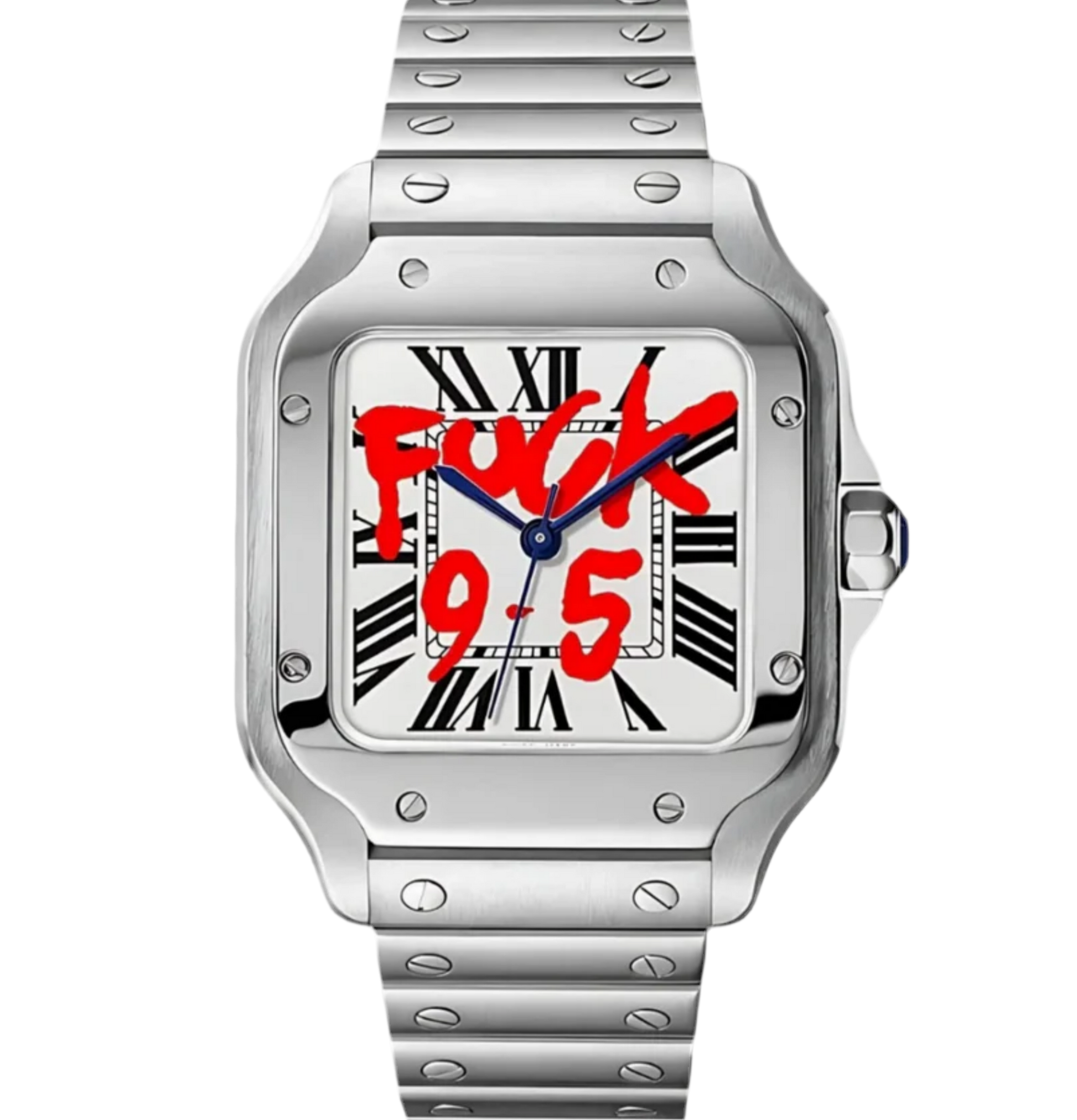 La Santos “Fuck 9-5” est conçue pour les esprits libres qui osent exprimer leur indépendance. Avec son cadran unique et son mouvement automatique certifié, elle associe fiabilité et caractère dans un design intemporel.